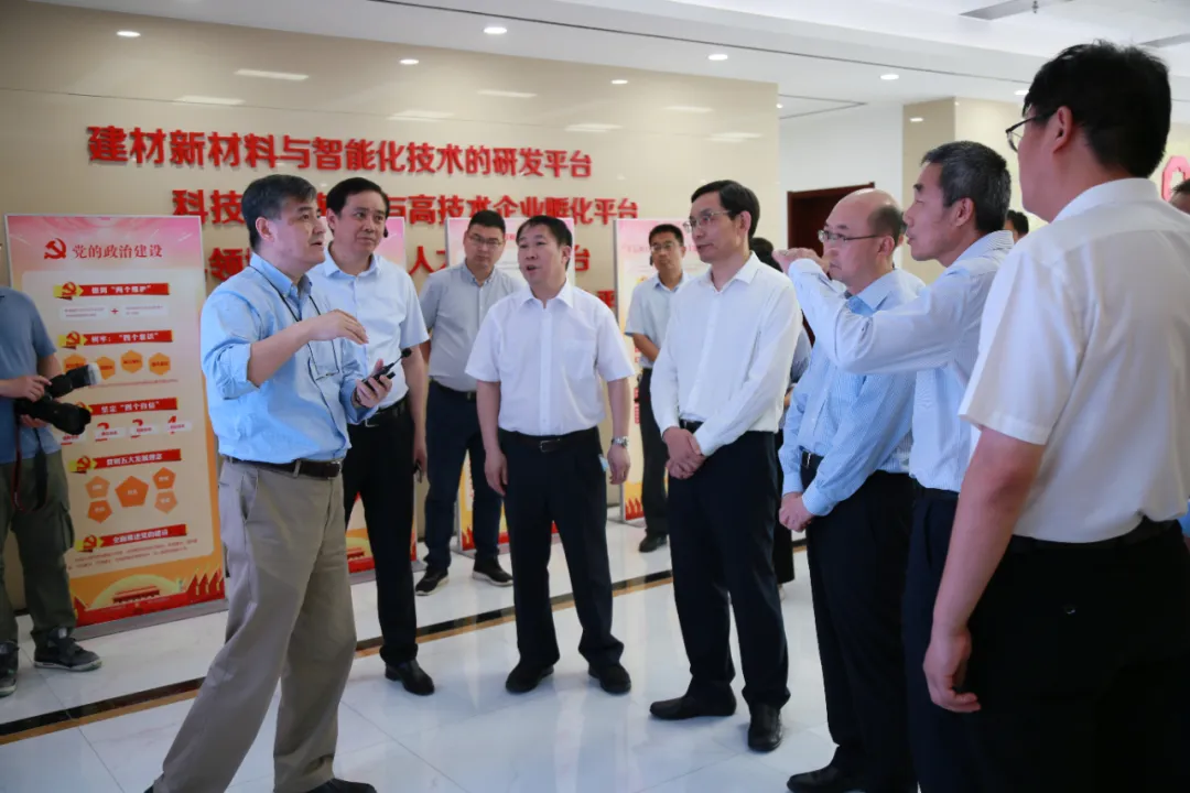 中国建材集团董事会办公室经理邱艾平,战略发展部业务主管袁金,山水集团副总裁、党委副书记张继武,中国建材总院相关部门负责人,国家玻璃深加工工程技术研究中心首席科学家、绿色建筑材料国家重点实验室副主任汪洪,产业园各单位领导班子全体人员及相关负责人参加调研座谈。