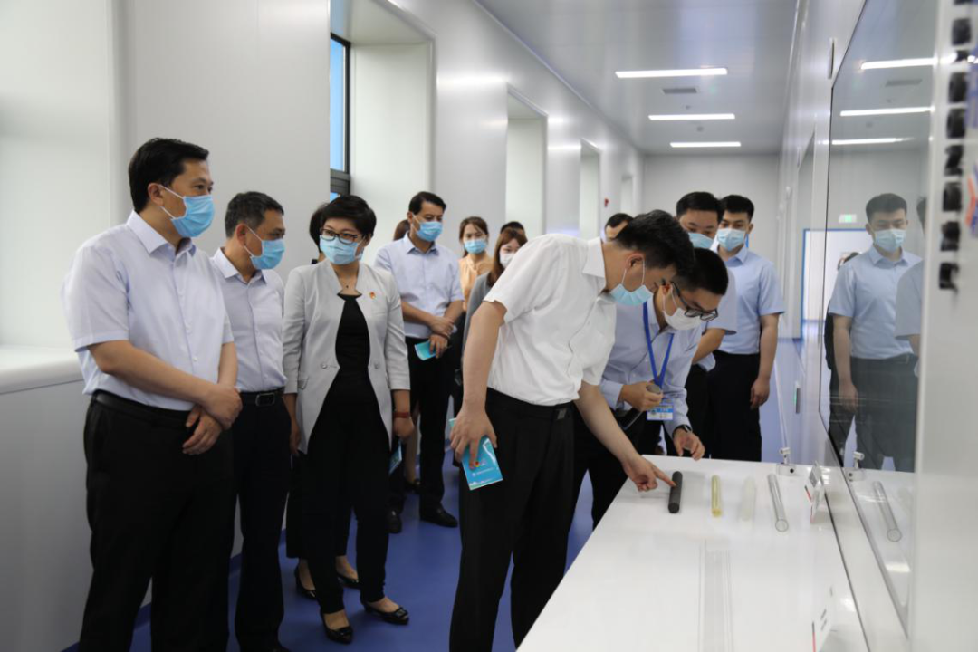 调研中,刘天东一行实地参观了图像光导识别材料生产线,听取了王三昭关于公司项目建设、产品介绍、市场前景、科技创新等情况的汇报,并详细询问了生产工艺流程,高度赞扬了平均年龄28岁的科研攻坚专班的创新精神。公司自成立以来,高度重视培养青年科技人才,着力打造青年创新团队。短短一年左右的时间,“90后”挑起科研重担,成长为公司科技创新的重要力量,在技术攻关上取得了累累硕果。
